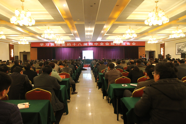 12月26日,我县举办学习贯彻党的十八届四中全会精神专题报告会。邀请华东政法大学行政法学教授、硕士研究生导师邹荣做题为《理论与道路自信的法治宣言》专题报告。 我县副处级以上领导干部、县十四届人大代表、县人大机关全体工作人员,公、检、法、司全体班子成员,各乡镇党委书记、乡镇长、专职人大副主席参加报告会。报告会由县人大主任张思民主持。