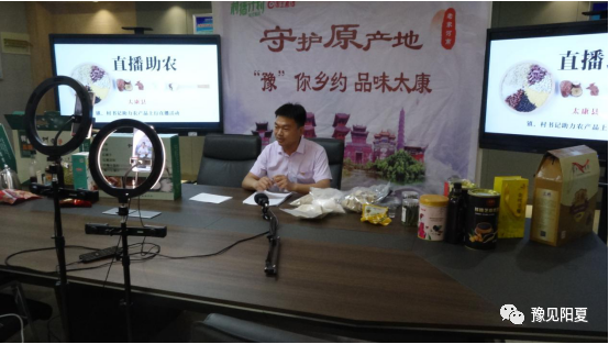 为利用互联网拓宽县域农特产品销售渠道,助力脱贫攻坚,2020年5月15日上午,商务局在太康县电子商务公共服务中心六楼直播间举办“守护原产地,`豫’你乡约,品味太康”直播活动,老冢镇镇长陈朝阳以及企业负责人受邀来到直播间,分别对家乡的红薯粉条、一芋六吃、农家六宝、姐妹豆糁等农特产品代言推广销售。商务局副局长祝勇现场观看并作出了相关指导。