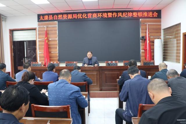 国庆长假后,太康县自然资源局以饱满的精神状态全面投入到各项工作中。10月8日上午,太康县自然资源局党组书记、局长刘施恩主持召开中层以上干部会议,对全系统优化营商环境暨作风纪律整顿工作进行再动员、再部署、再推进。会议传达学习了中国共产党周口市第五次代表大会精神及市委书记安伟关于优化营商环境的讲话要点,要求以刮骨疗毒、壮士断腕的决心和勇气,下猛药、出重典,正风气、严作风,优环境、净生态,以铁的纪律护航全县经济高质量发展。