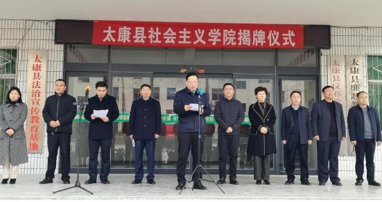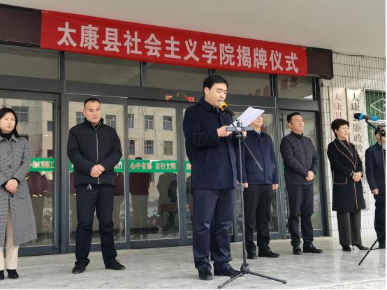 仪式上,于阗镇部长宣读《关于成立太康县社会主义学院的通知》,市委统战部常务副部长耿党恩致贺词,最后部长市委统战部常务副部长耿党恩和县委副书记李海涛共同为太康县社会主义学院揭牌。