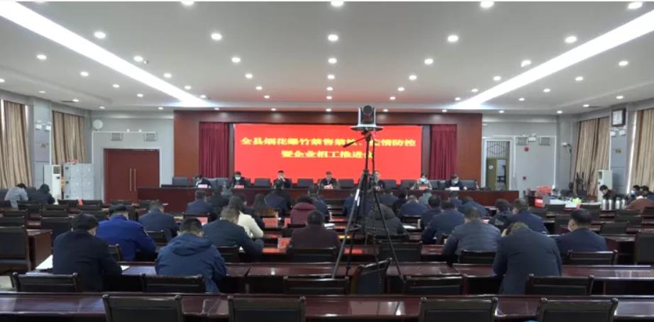 2月4日,农历大年初四,全县烟花爆竹禁售禁放、疫情防控暨企业招工推进会在综合楼一楼会议室召开。县长张峰主持会议并讲话。