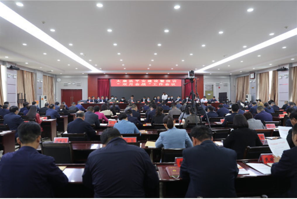 会议以视频形式召开,县处级领导干部,各乡镇党委书记,各部委办常务副职、县直及驻太单位主要负责同志,政法委全体人员及法、检、公、司全体班子成员在主会场参加会议;各乡镇设分会场,各乡镇全体班子成员,法庭庭长、派出所所长、司法所所长,乡(镇)直机关负责人,行政村党支部书记在分会场参加会议。