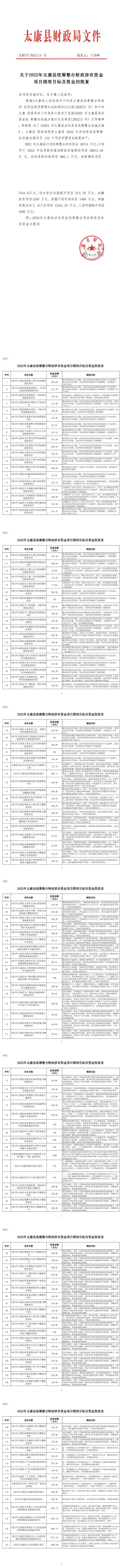 关于2022年太康县统筹整合财政涉农资金项目绩效目标及资金的批复