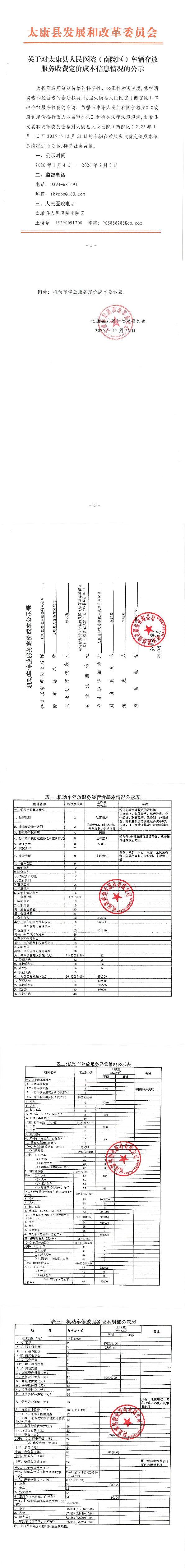 关于对太康县人民医院(南院区)车辆存放服务收费定价成本信息情况的公示