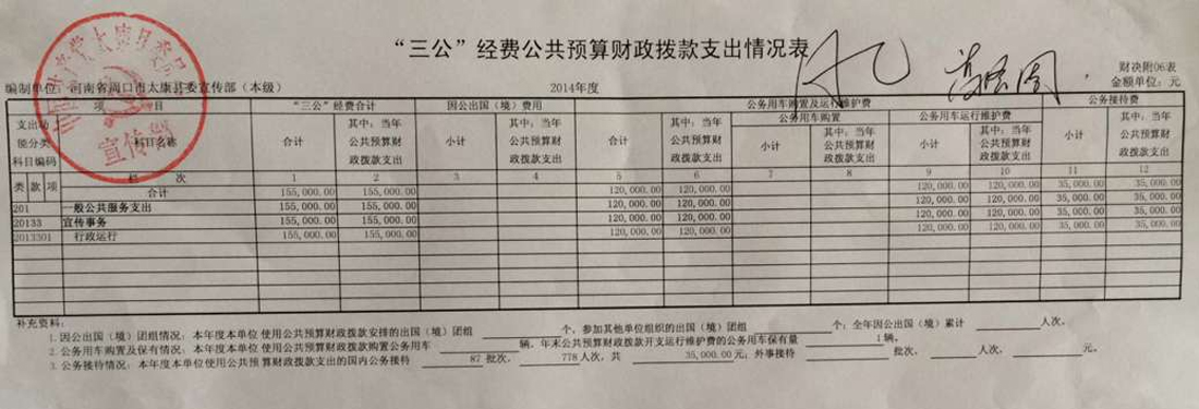 2014年度太康县宣传部“三公”财政拨款支出决算数为15.5万元。