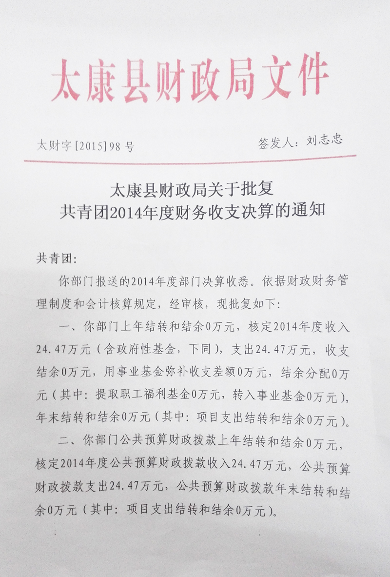 共青团太康县委关于2014年度部门决算公开的情况说明