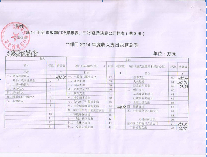 2014年度支出总计391.70万元,其中:人员经费317.91万元,日常公用经费73.78万元。