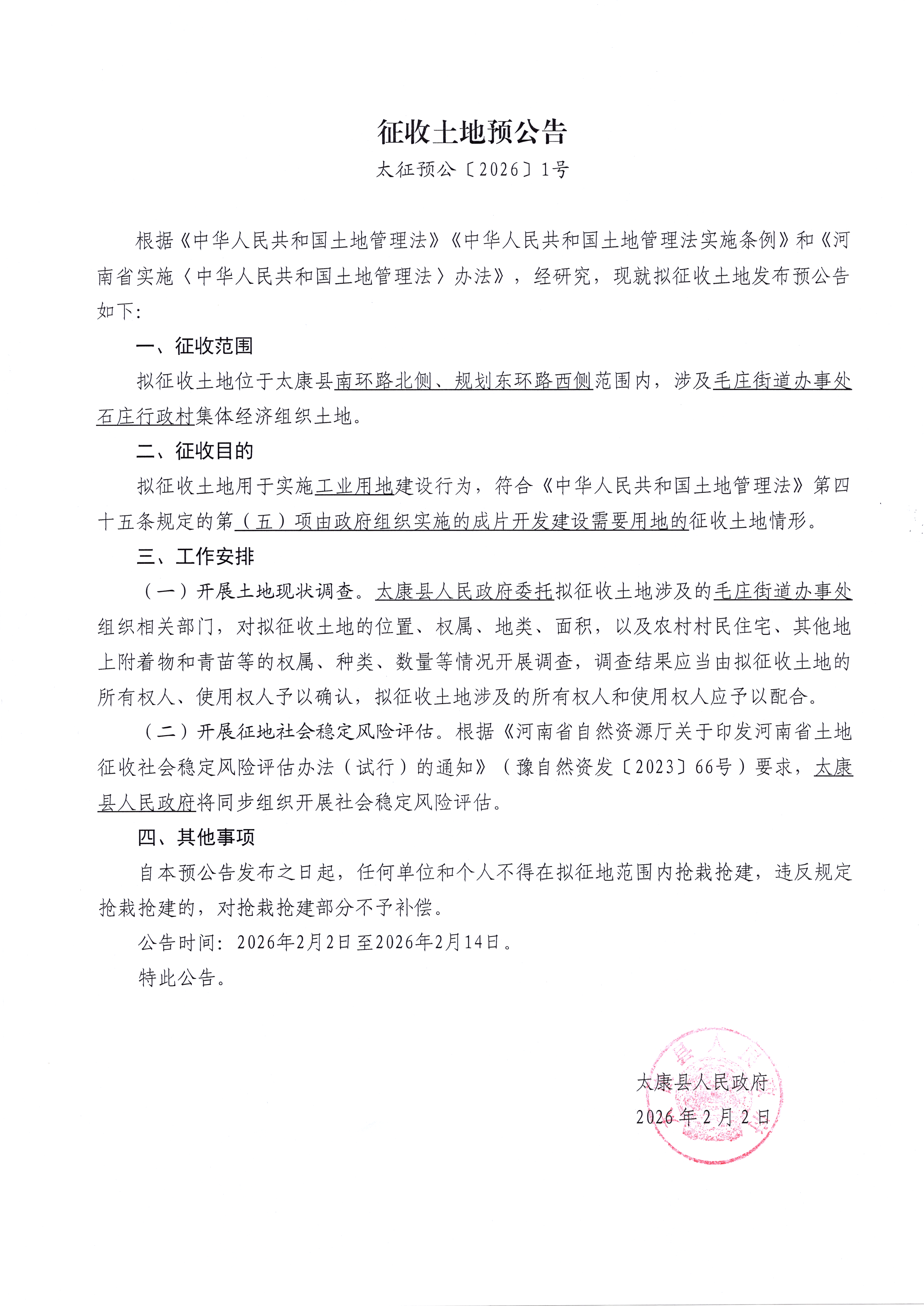 太征预公〔2026〕1号