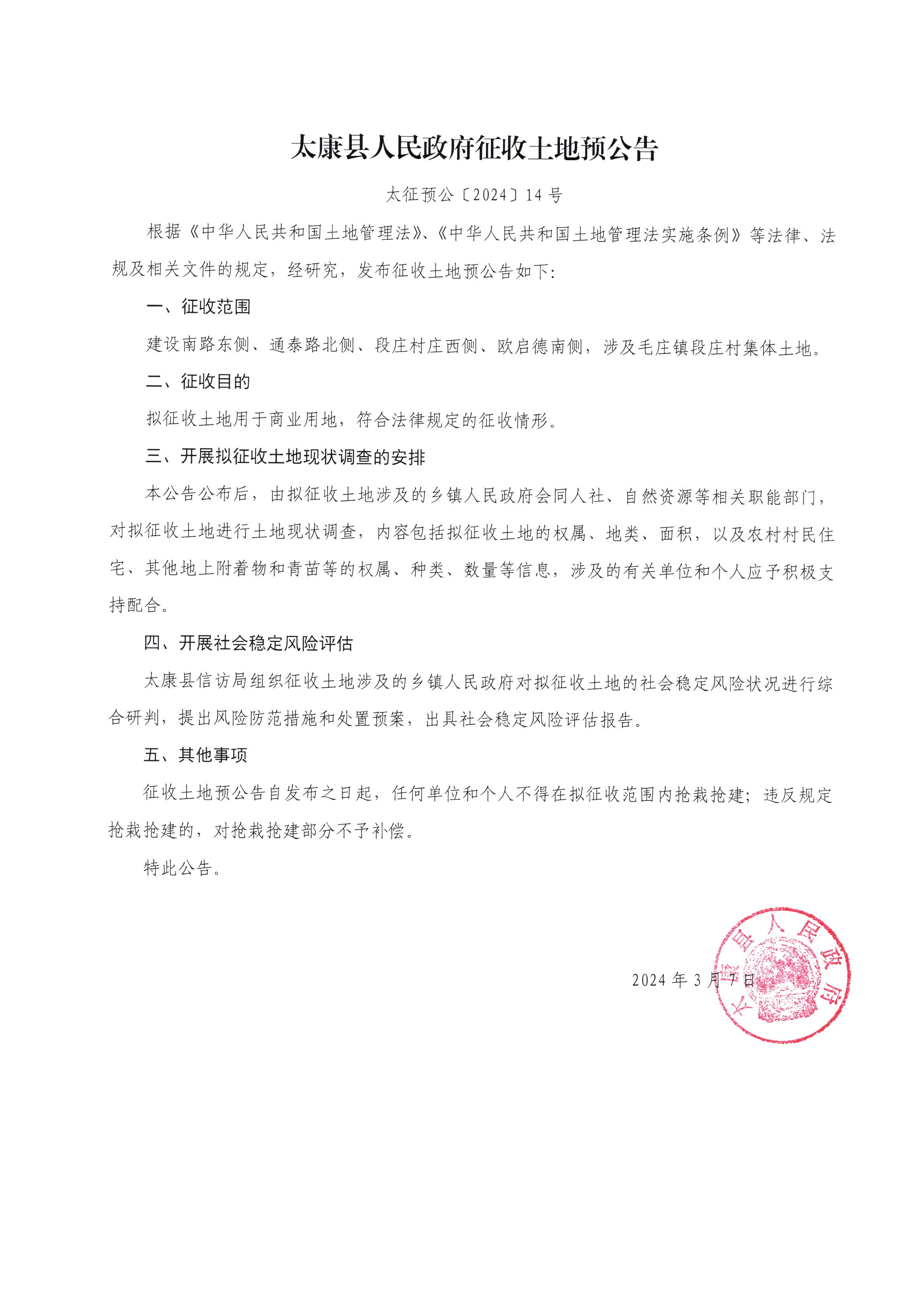 太征预公〔2024〕14号