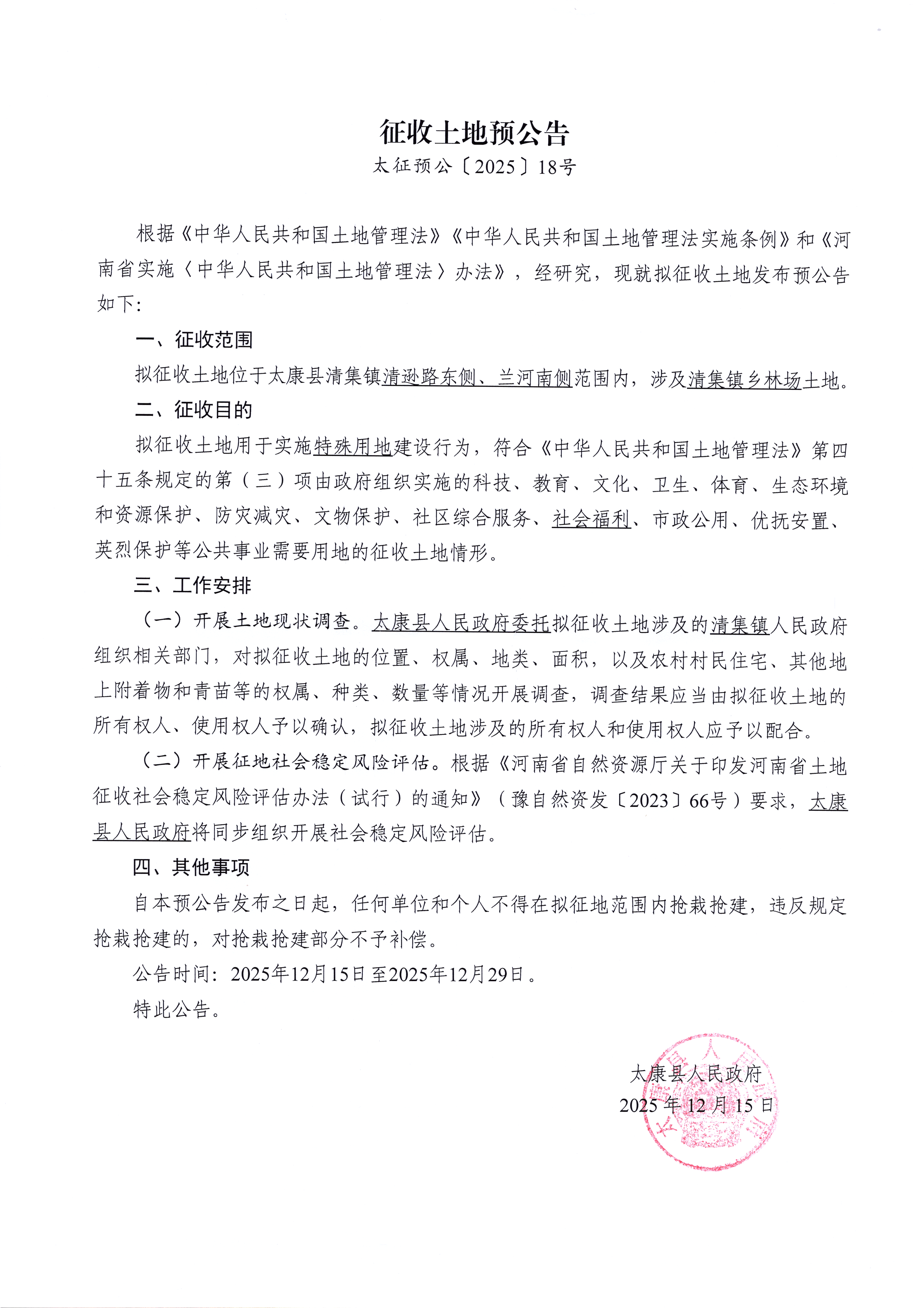征收土地预公告