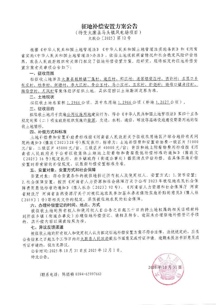 征地补偿安置方案公告