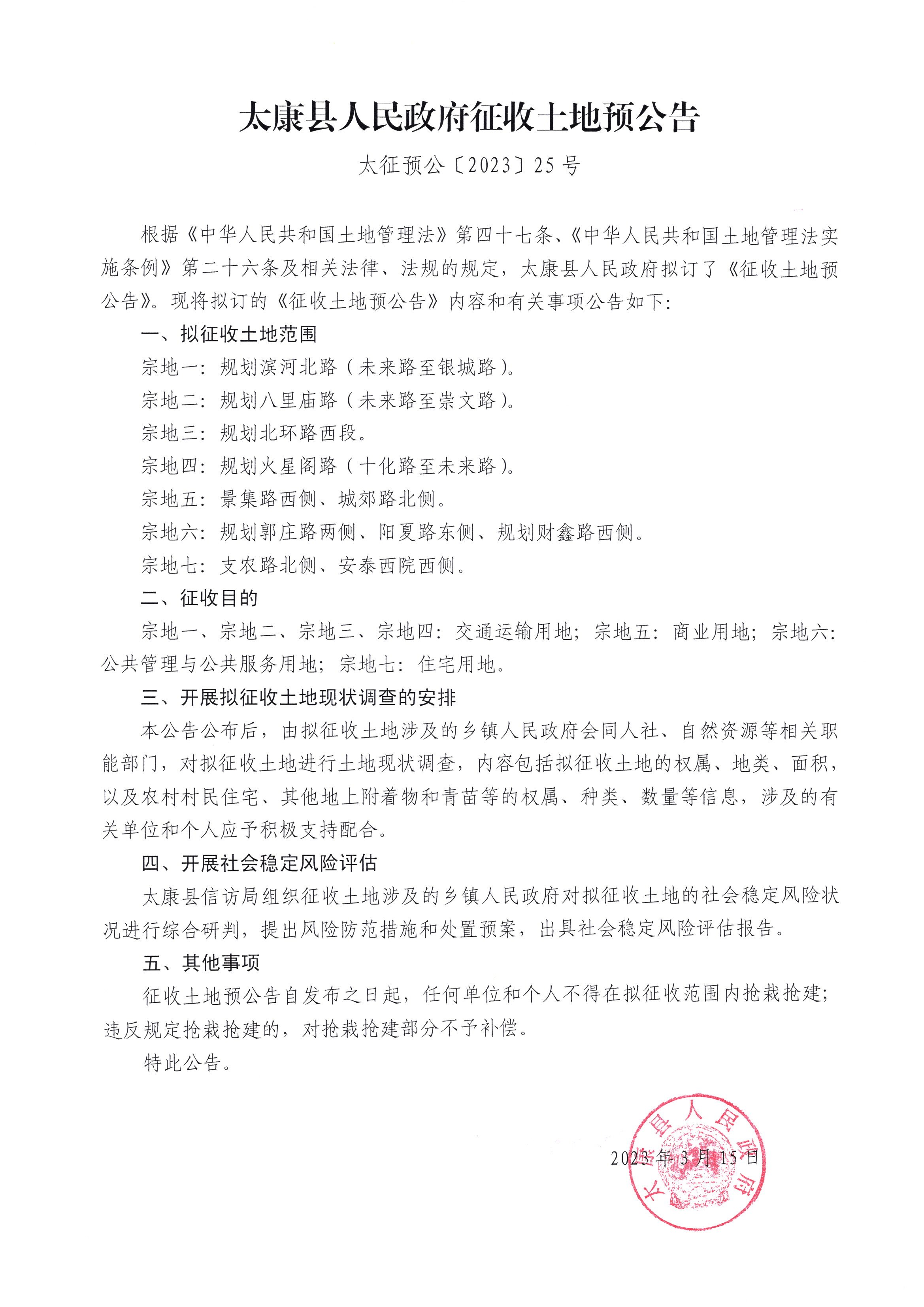 太康县人民政府征收土地预公告