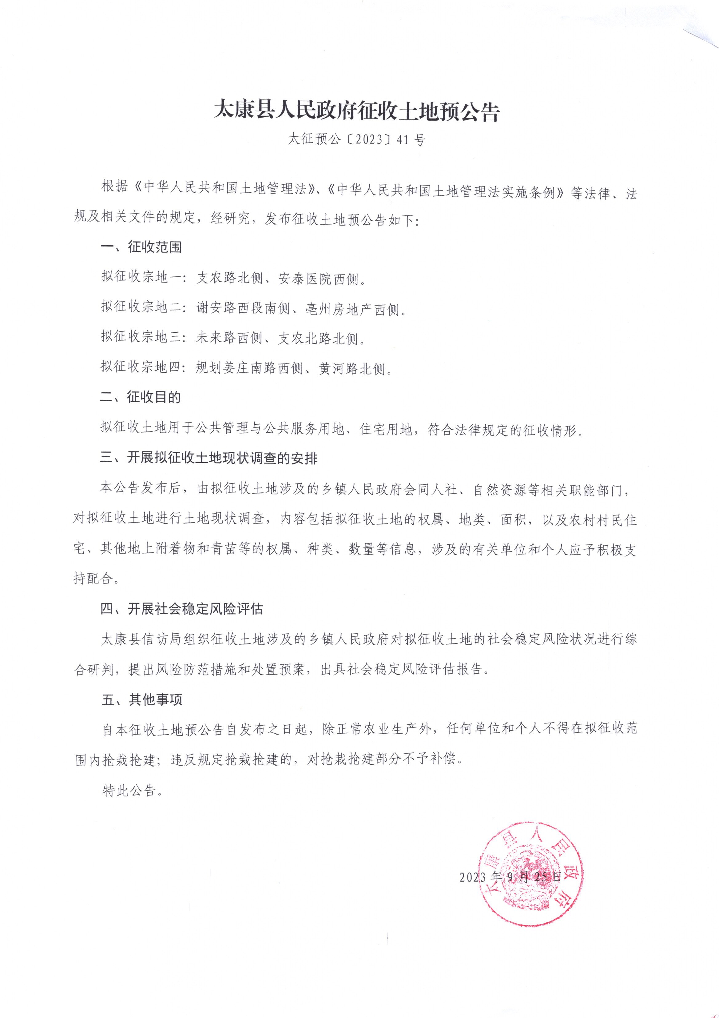 太康县人民政府征收土地预公告