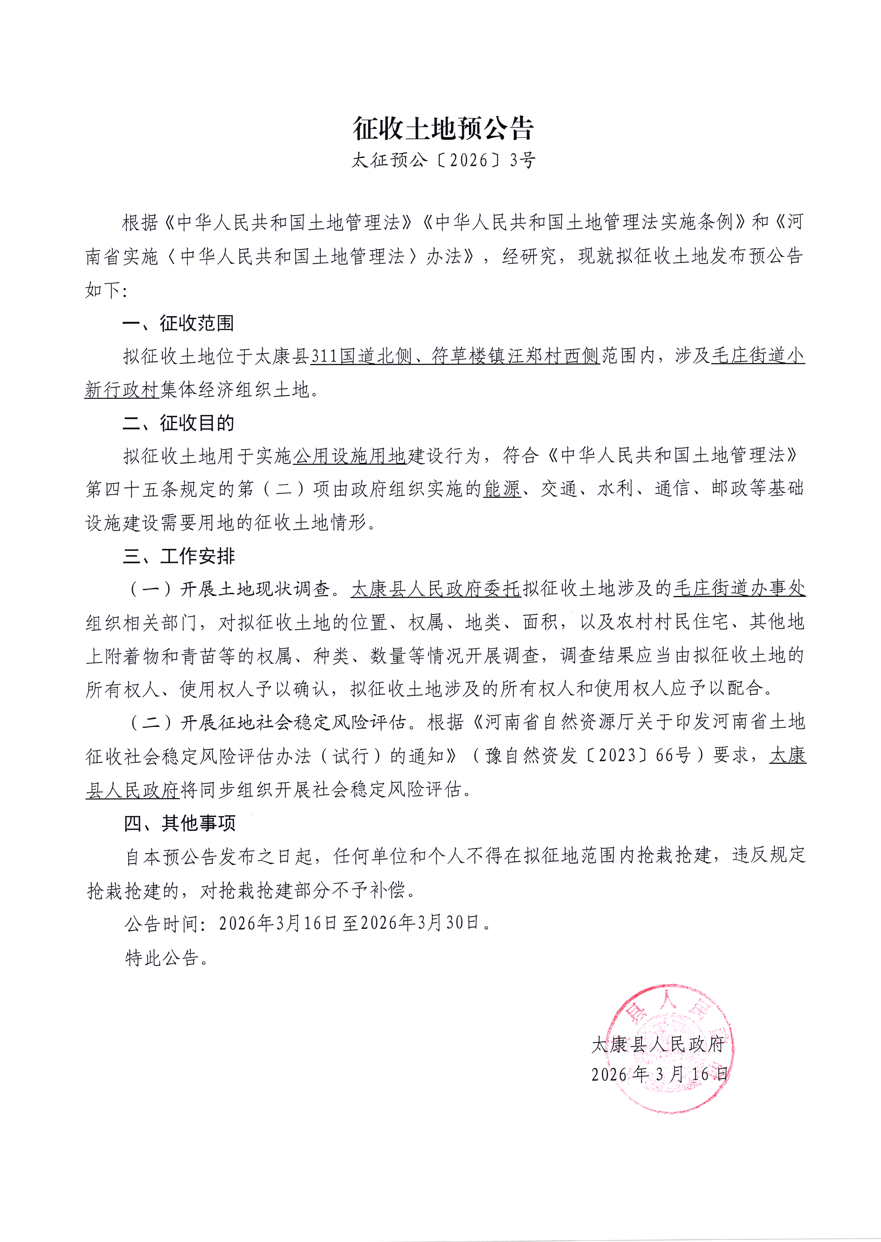 征收土地预公告